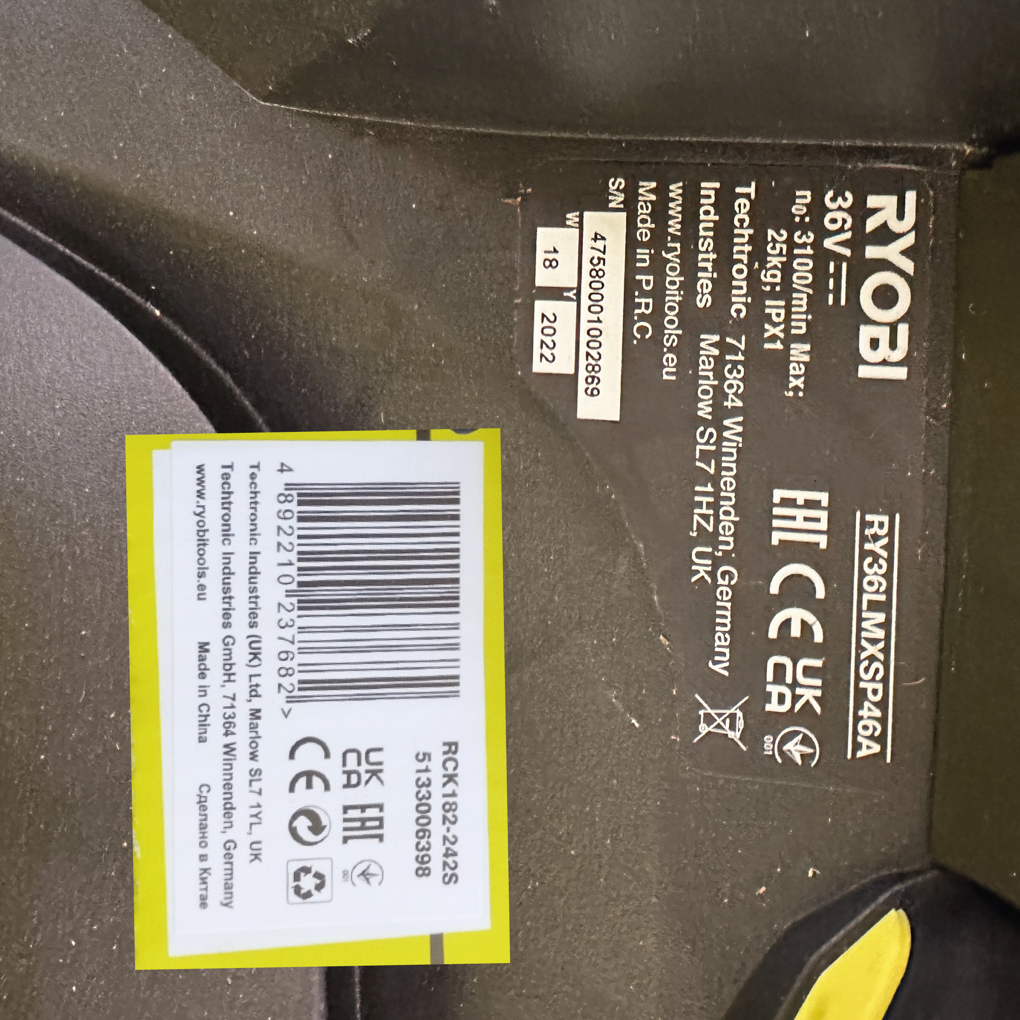 Le code-barres doit être découpé de l’emballage carton. L’étiquette décollée ne sera pas acceptée. La photo doit être composée de votre code-barres découpé et disposé à coté de l'étiquette du N° de série de votre outil, comme la photo ci contre